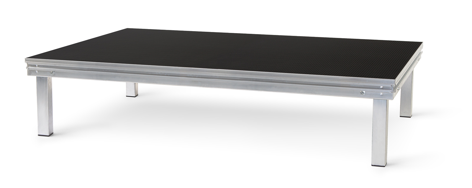 Bühnenelement Praktikus light zur Aufnahme von 4 Steckfüßen ohne Bühnenboden, Eckwinkel mit Schnellspanner einschl. 1 x-Verbindungsstück mit Steg und 1 x-Verbindungsstück ohne Steg Bühnenrahmen mit einer Längsstrebe Bauart geprüft mit 750 kg/m² Gewicht mit Siebdruckplatte nur 34 kg