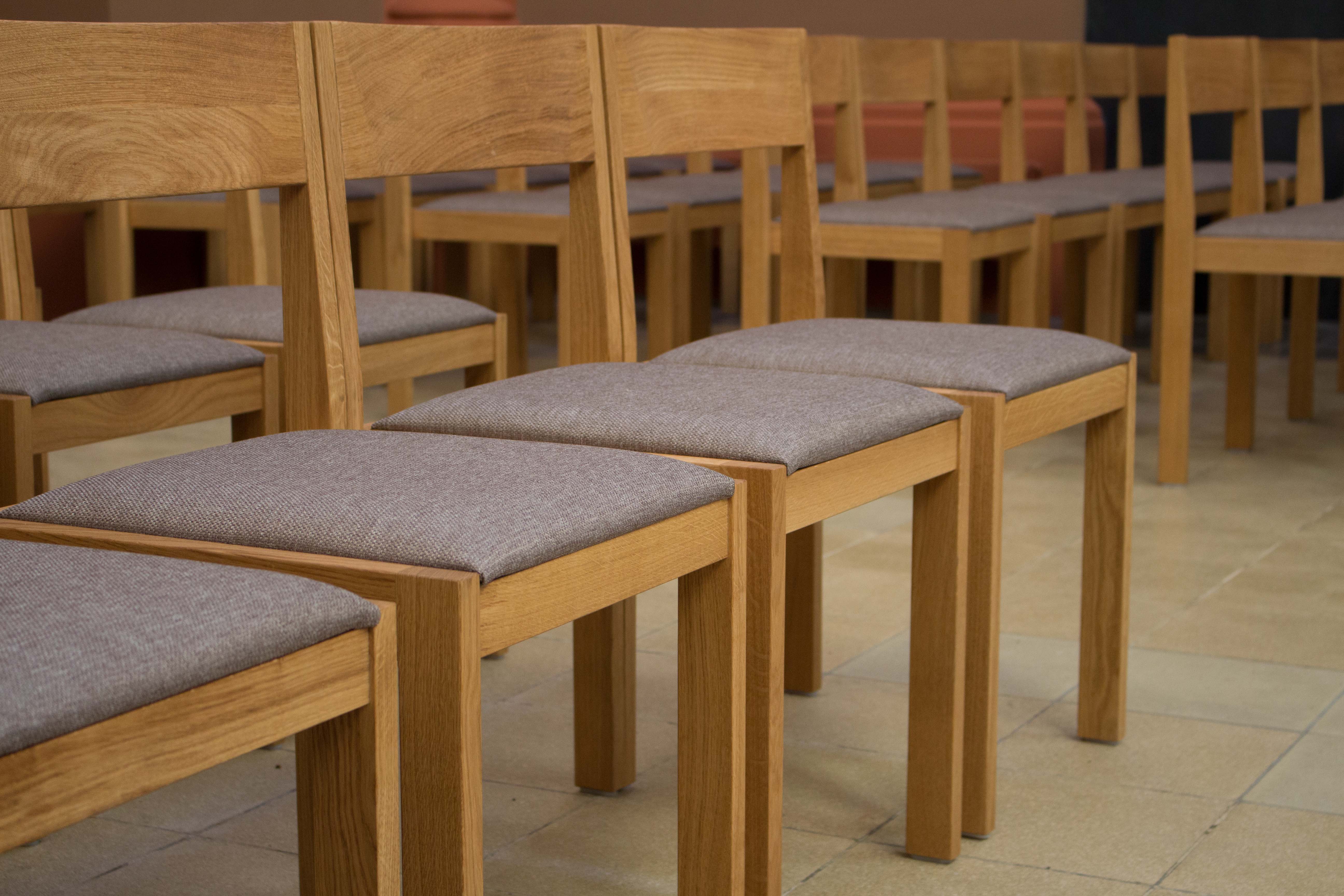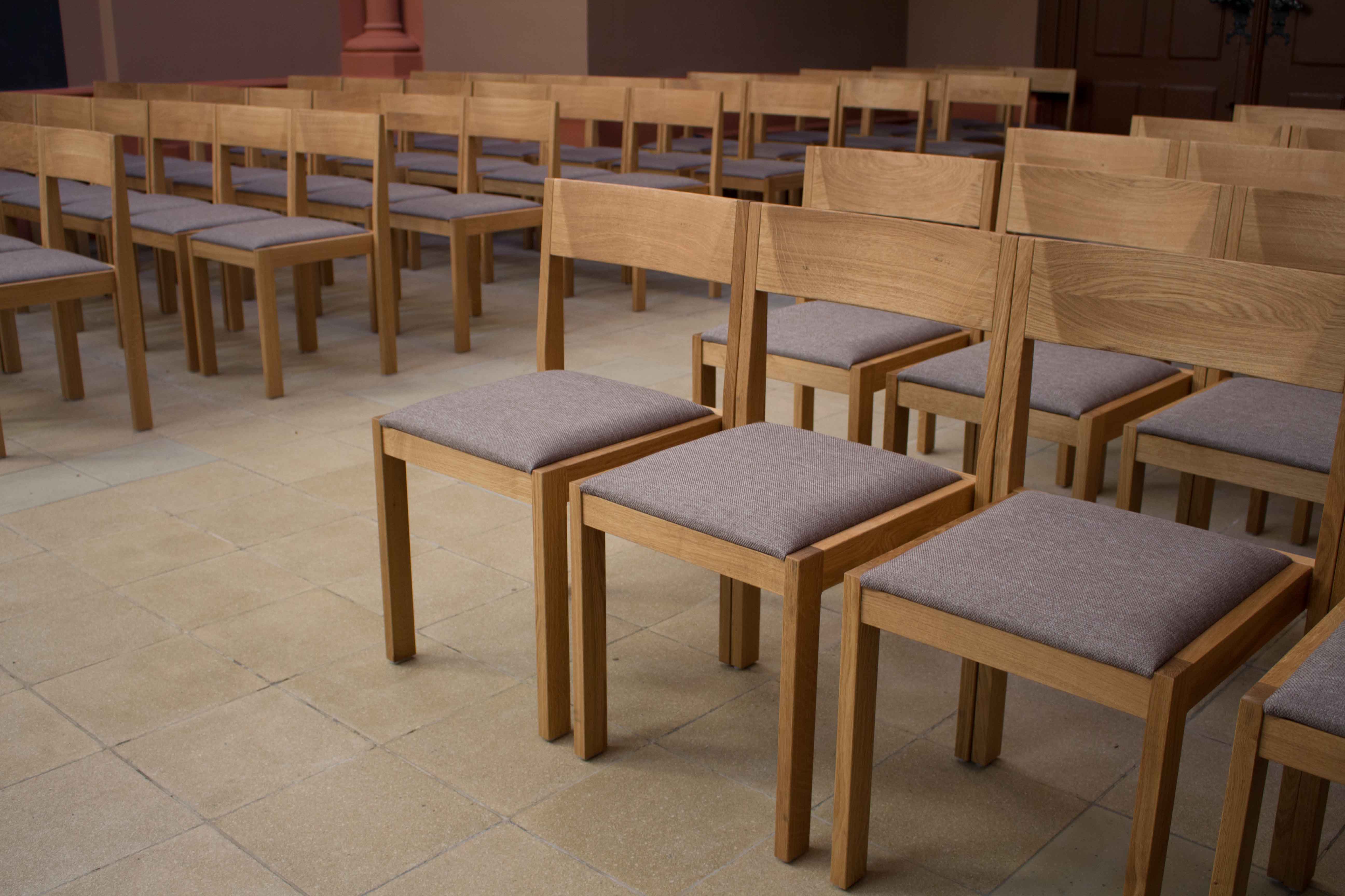 Sie haben die Möglichkeit, den Sakralstuhl für die Friedhofskapelle Ihren Wünschen entsprechend zu gestalten. Er kann auf Wunsch in vielen Farben gebeizt werden, gern auch nach Ihren persönlichen Vorstellungen. Der Kapellenstuhl ist außerdem mit oder ohne Polster erhältlich und kann mit vielen verschiedenen Zusatzoptionen wie Armauflagen, Kniebank, Reihenverbindern und Gesangbuchauflage erweitert werden. So können Sie den Sakralstuhl für die Friedhofskapelle perfekt an Ihre Räumlichkeiten anpassen.