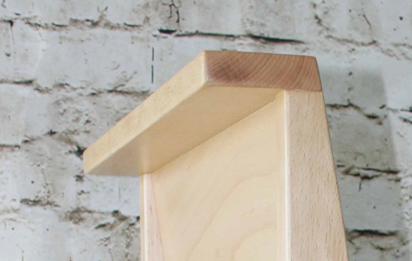 Lehne aus Massivholz, ergonomisch formgefräst.