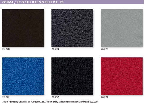Stoffpreisgruppen 26/30/81 Wählen Sie Ihren Stoff aus unserer gesamten Stoffkollektion aus. Alle Stoffe sind objekttauglich.