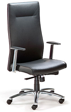 2487 Chefsessel hoher Rücken, Vorderseite und Armlehnen echt Leder schwarz, körpergerecht geformte Polsterung, ALU-Fußkreuz poliert,inkl. Rollen für Teppichböden nur wie Abb. lieferbar