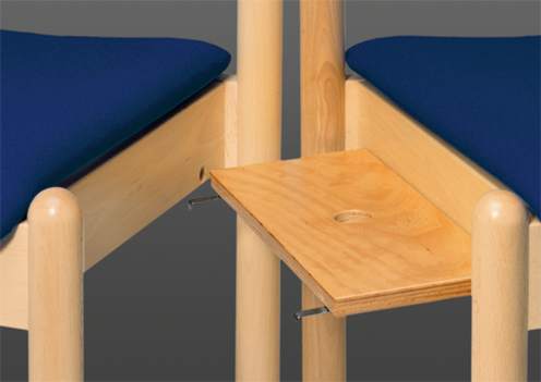 13 mm starkes hochdruckverleimtes Sperrholz dreidimensional körpergerecht verformt mit Sitzmulde. Vorderkante in engem Radius abgebogen und kniefreundlich gerundet. Bei Polsterausführung mit Polyätherauflage 20 mm stark, RG 40. Sitz verschraubt und austauschbar.