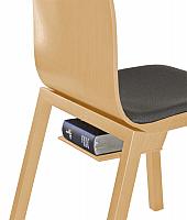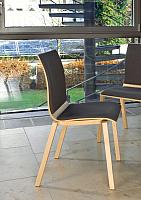 in Buche-Schichtholz aus hochdruckverpresstem Buchenfurnieren mindestens 10 mm stark, mindestens 9 Lagen. Schale LP mit Lordosestütze, mit dem Gestell unsichtbar verschraubt. Die Lordosestütze ist eine besondere Ausformung im Lendenbereich des Stuhles zur Unterstützung einer wirbelsäulengerechten Sitzhaltung. Sitz und Rückenpolster verschraubt und auswechselbar. Polsterung mindestens 20 mm Schaum RG 35.