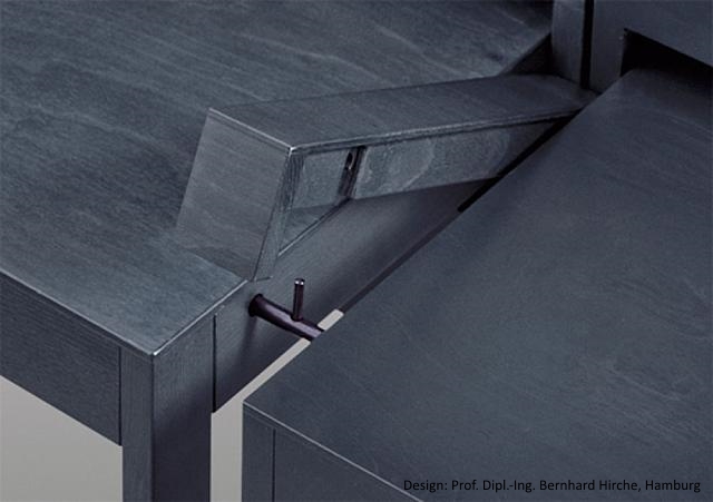 zwischen die Einzelstühle eingelegtes Verbindungsstück, ca. 60 mm breit, bündig mit dem Stuhlsitz, damit eine geschlossene Bank entsteht, mit Bajonettstab und 2. losem Bajonettstab zur sicheren Verbindung der Bankstühle
