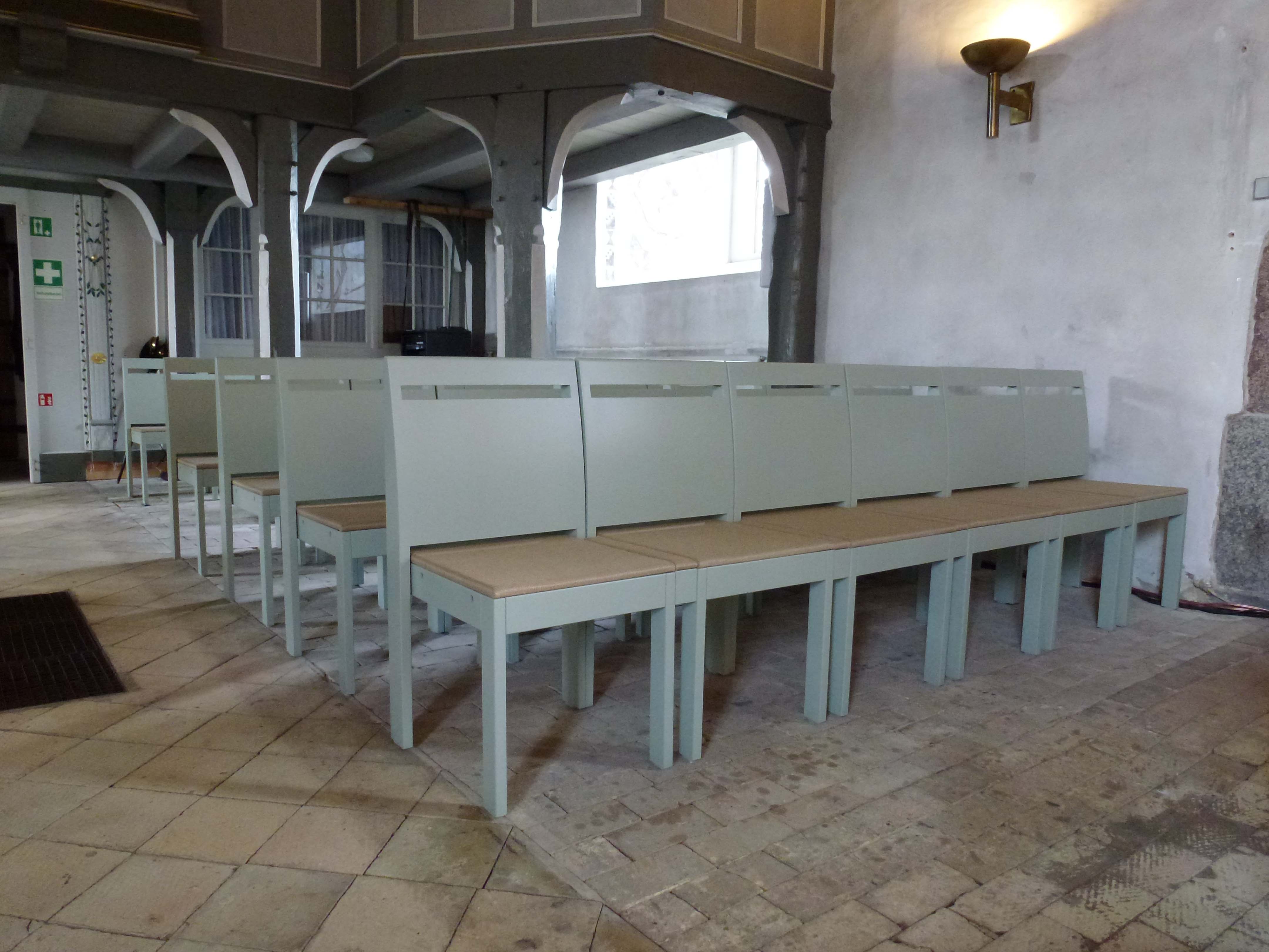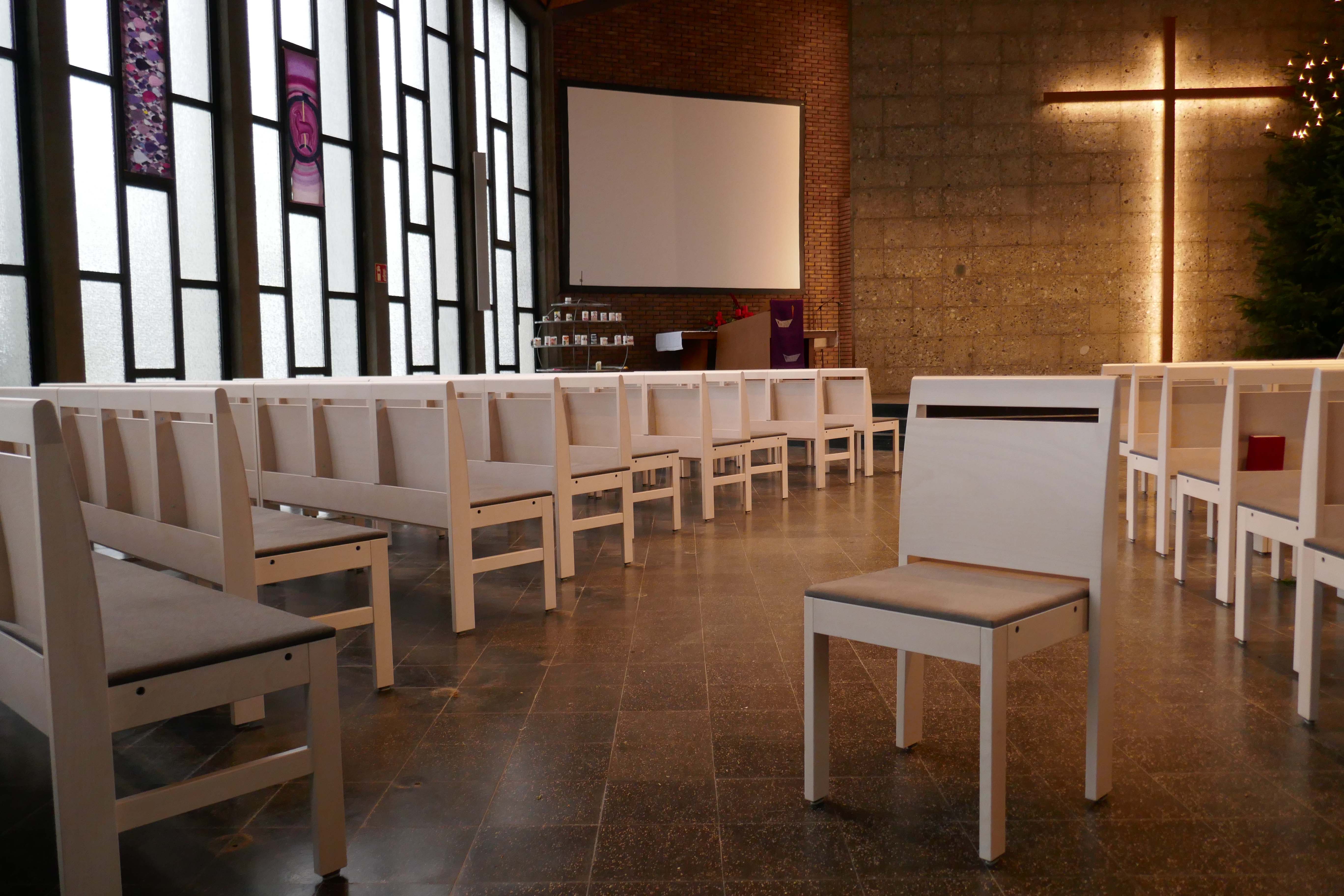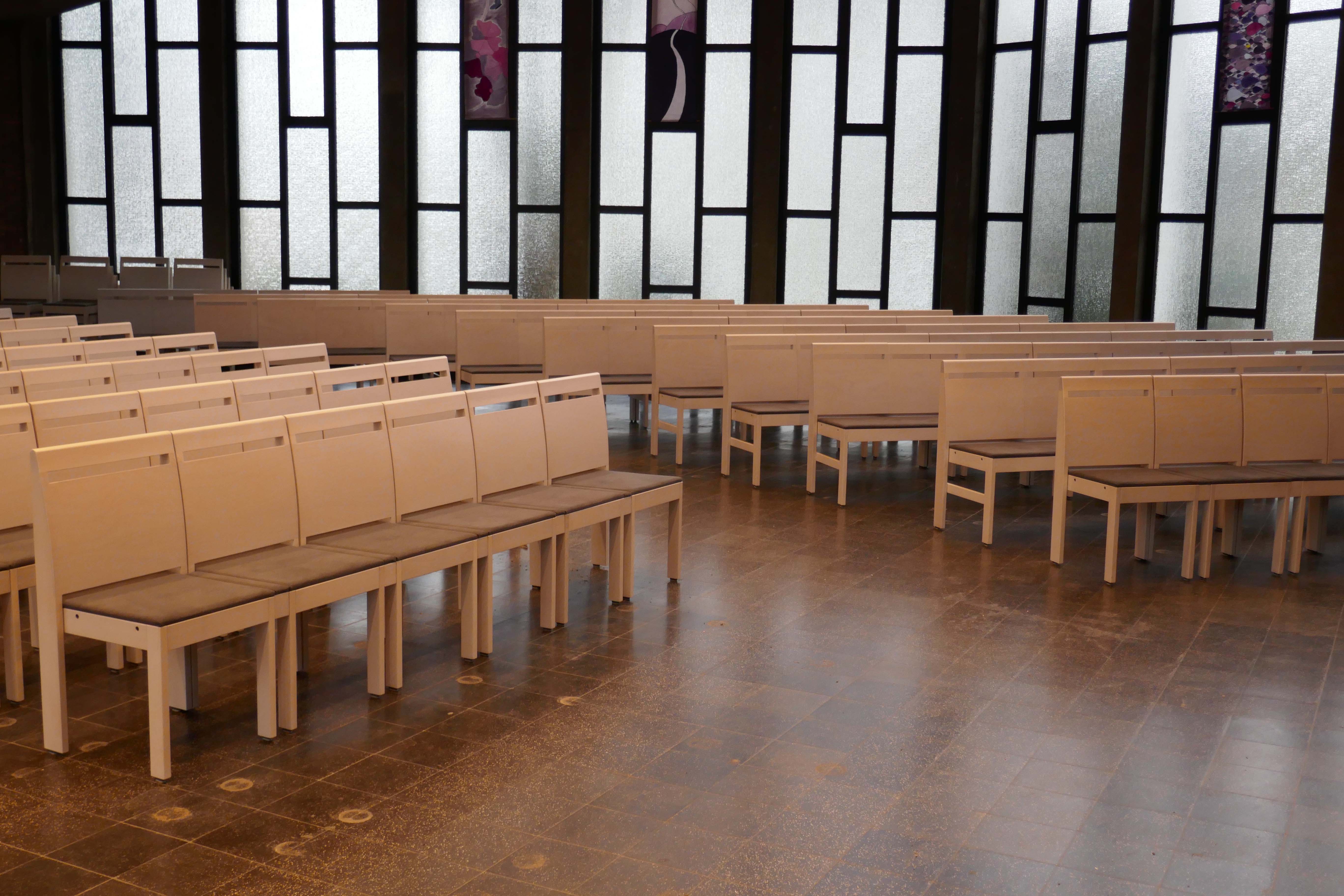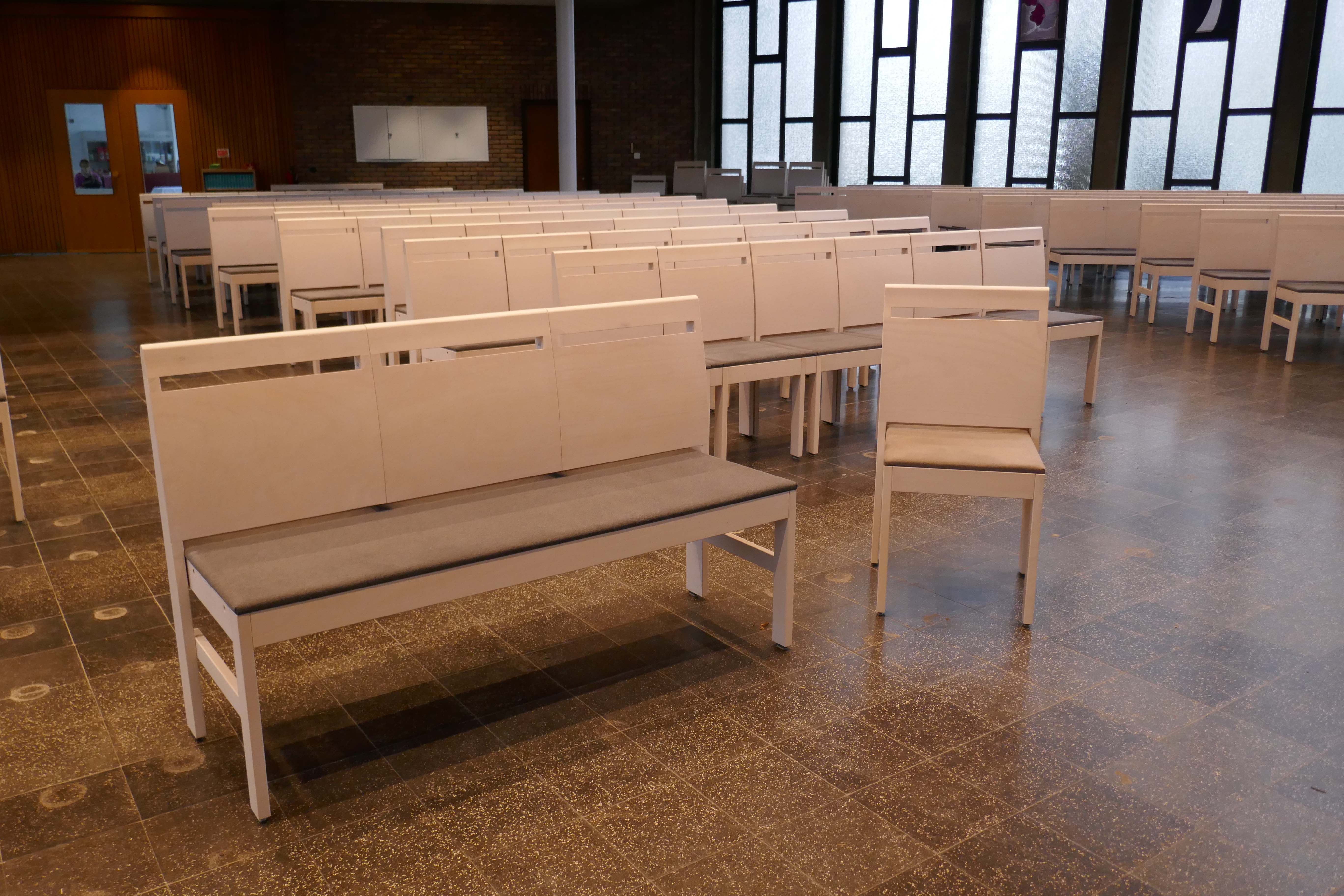 Unsere Kirchenstühle für Ihre Gemeinderäume und Kirchen werden höchsten Anforderungen gerecht . Kirchenstühle können optional mit hochwertigen Objektstoffen ausgestattet werden. Bestimmen Sie Material und Formgebung durch Optionen wie Gesangbuchablage, Reihenverbinder, Beize, Handtaschenhaken, Gebetsbuchhalter, Kniebänke, Polsterung und anderen Optionen.