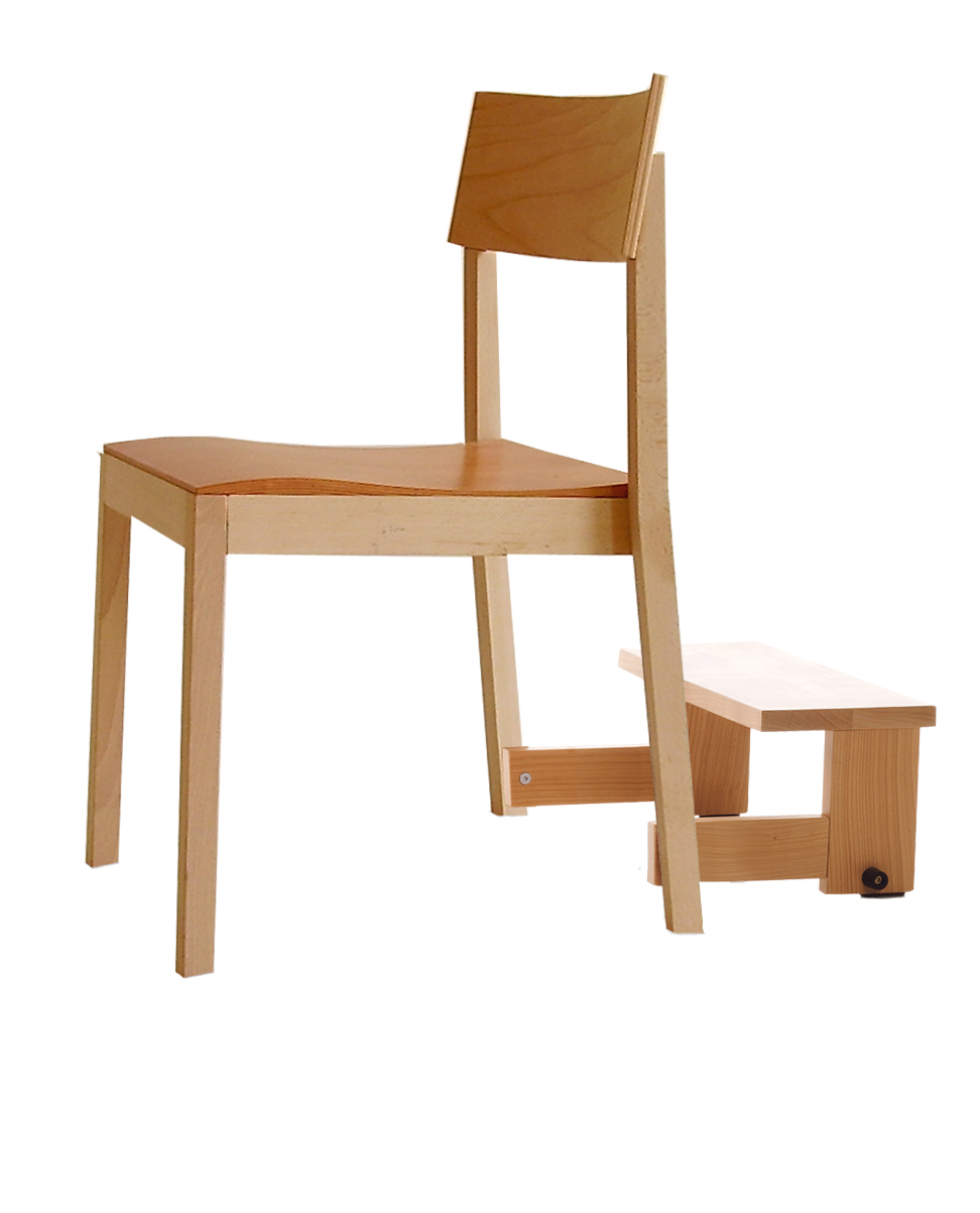 Die Sitzfläche ist ohne Polster mit einer Formholzwelle ausgestattet, damit man nicht vom Sitz rutscht.