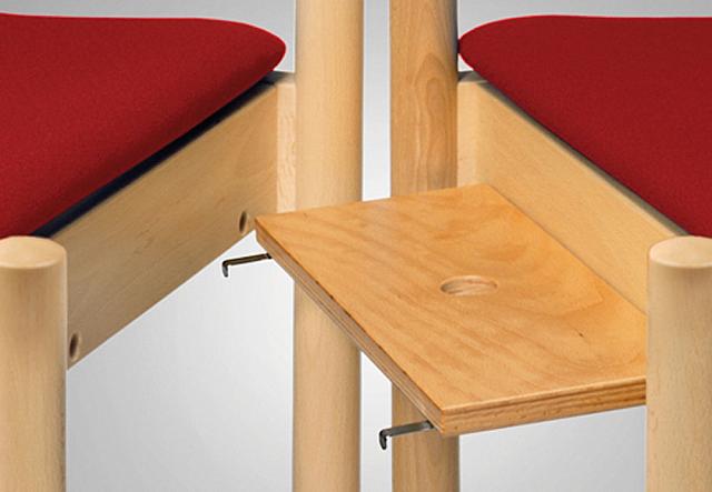 13 mm starkes hoch-druckverformtes Sperrholz dreidimensional körpergerecht verformt mit Sitzmulde. Vorderkante in engem Radius abgebogen und kniefreundlich gerundet. Bei Polsterausführung mit Polyätherauflage 20 mm stark, RG 40. Sitz verschraubt und austauschbar.