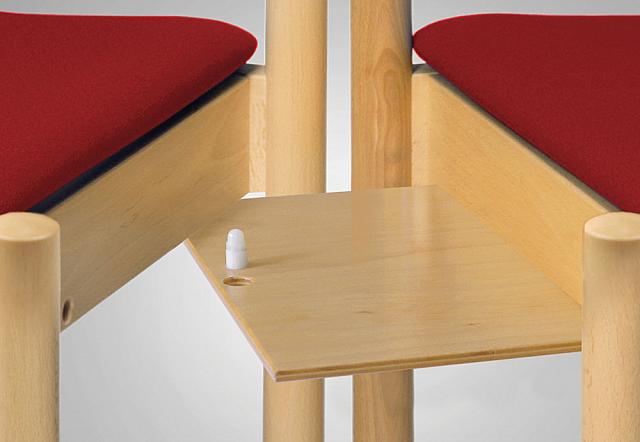 13 mm starkes hoch-druckverformtes Sperrholz dreidimensional körpergerecht verformt mit Sitzmulde. Vorderkante in engem Radius abgebogen und kniefreundlich gerundet. Bei Polsterausführung mit Polyätherauflage 20 mm stark, RG 40. Sitz verschraubt und austauschbar.