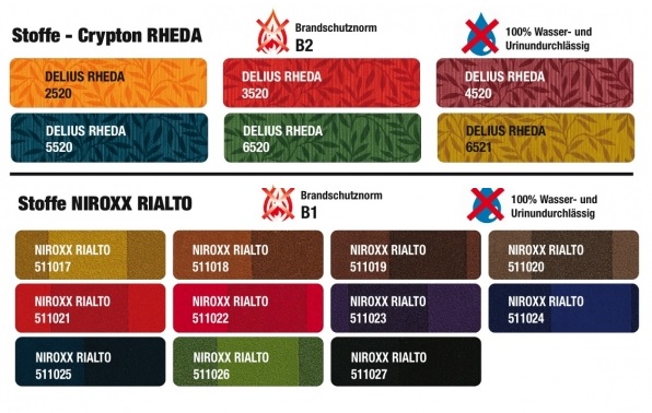 - Stoffauswahl Polster: 10 Designs erhältlich