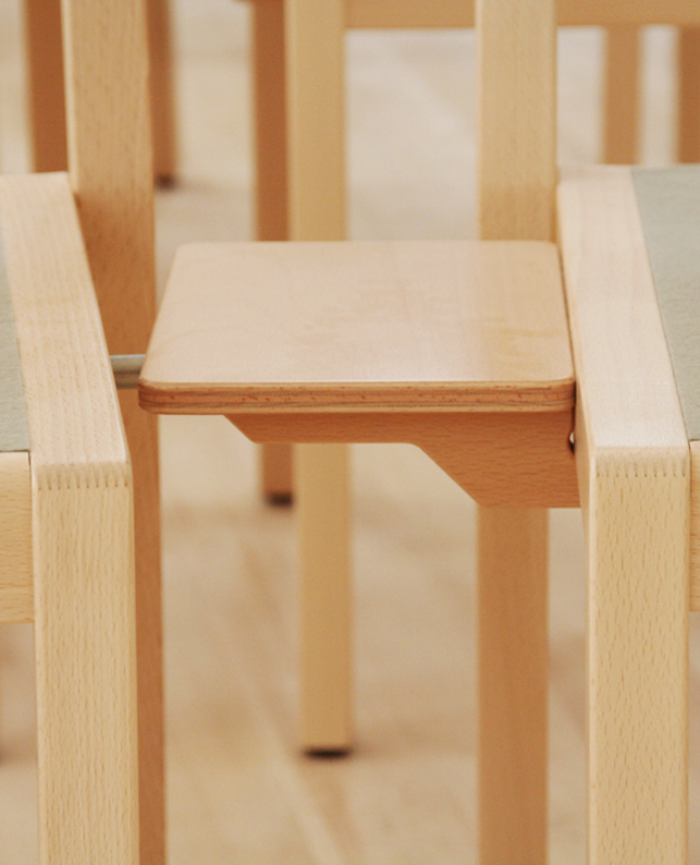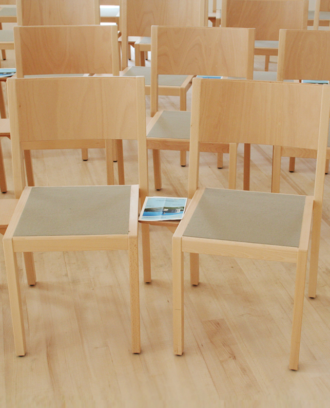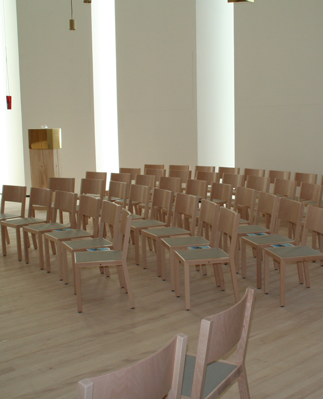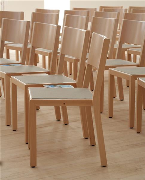 Kirchenstuhl Wels, Gestell Buche massiv natur lackiert, Sitz und Rücken Sperrholzformteil ergonomisch geformt.