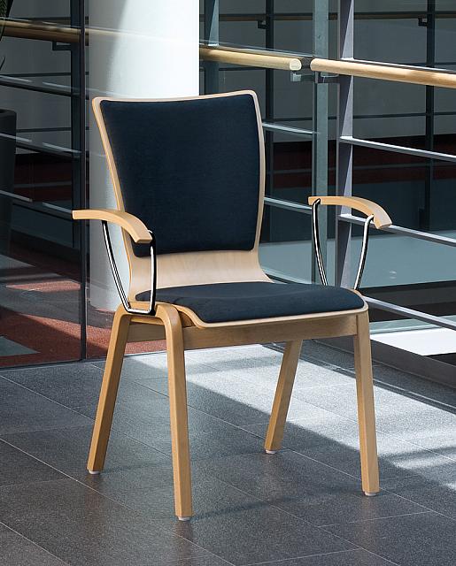 Kirchenstuhl Meta 160A-LE für Ihre Kirchengemeinde. Schale LE, mit Sitz- und Rückenpolsterung, mit Armlehne
