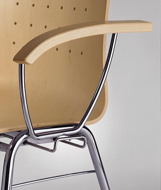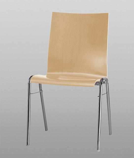 in Buche-Schichtholz aus hochdruckverpressten Buchenfurnieren mindestens 10 mm stark, mindestens 9 Lagen. Schale mit Lordosestütze, mit dem Gestell auswechselbar verschraubt, Schrauben microverkapselt, gegen selbständiges Lösen gesichert Lordosestütze ist eine besondere Ausformung im Lendenbereich des Stuhles zur Unterstützung einer wirbelsäulengerechten Sitzhaltung. Sitz und Rückenpolster verschraubt und auswechselbar. Polsterung mindestens 20 mm Schaum RG 35.