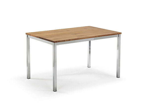 3062 701 MY NATURE Tisch Gestell 01 chrom 08 perlsilber Vierkantstahlrohr ca. 40 x 40 mm Tischplatte Kernbuche massiv natur geölt (wasserfest) ca. 23 mm stark 12 = ca. 120 x 80 cm 16 = ca. 160 x 80 cm